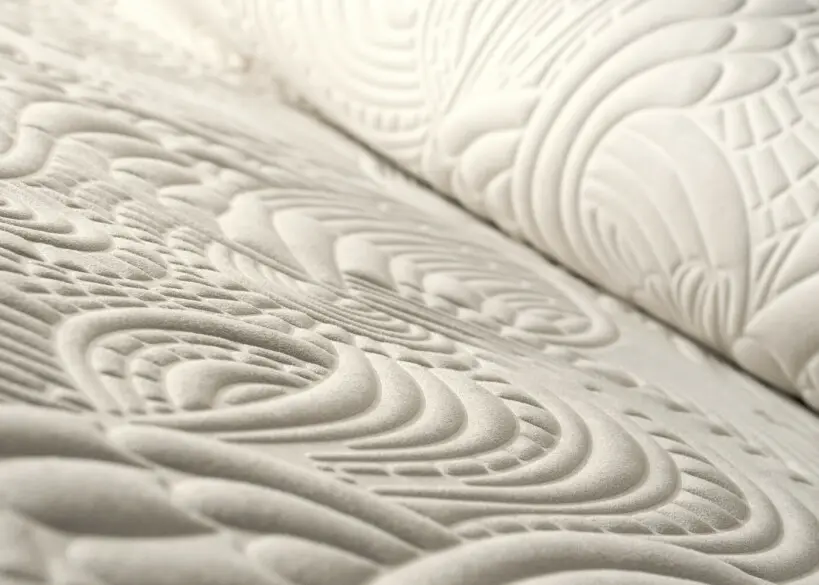 3D wallcovering with a soft suede look, inspired by the Dodo Pavone’s natural outfit – a soft plumage of silvery feathers with different nuances of grey, blue, beige and white.