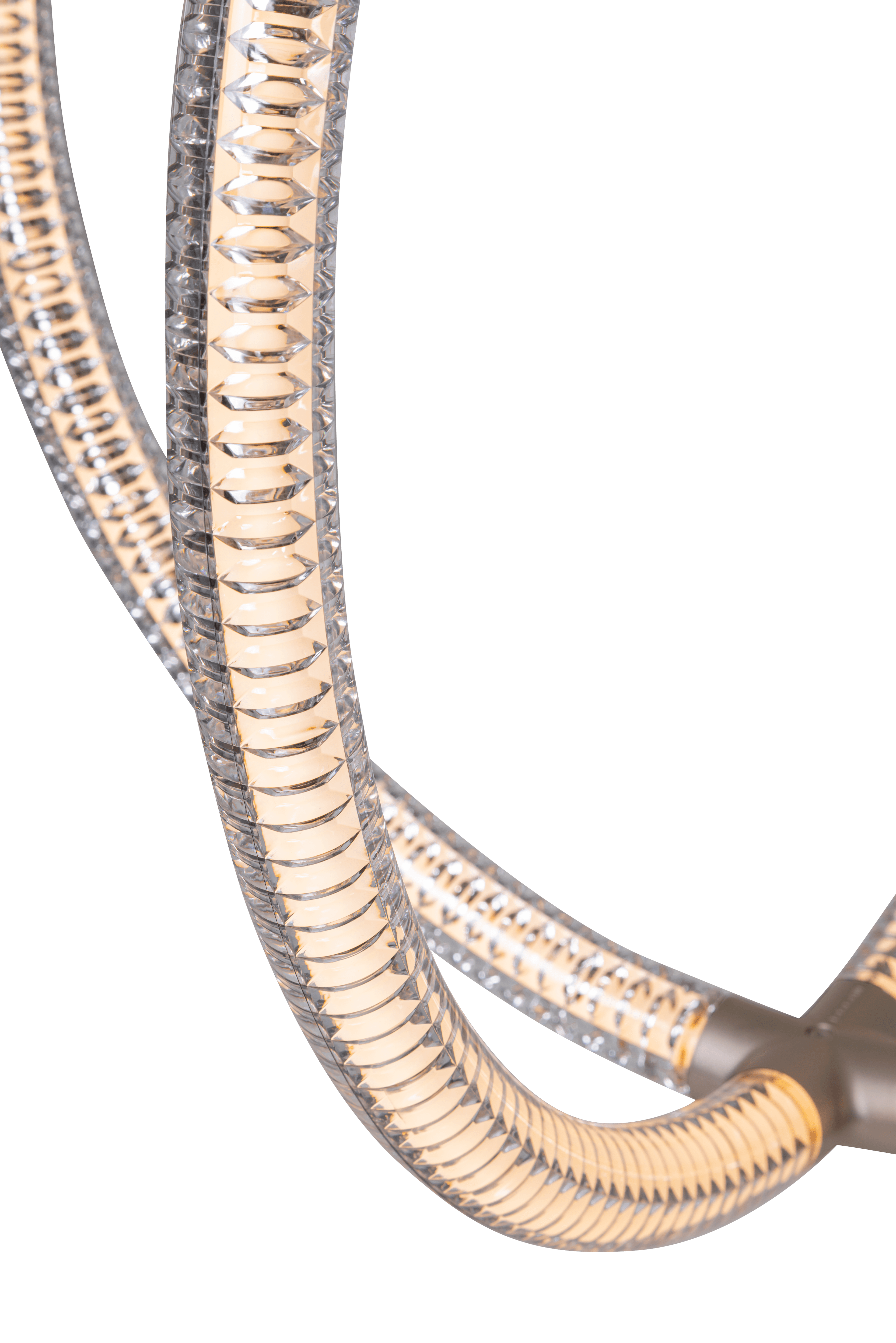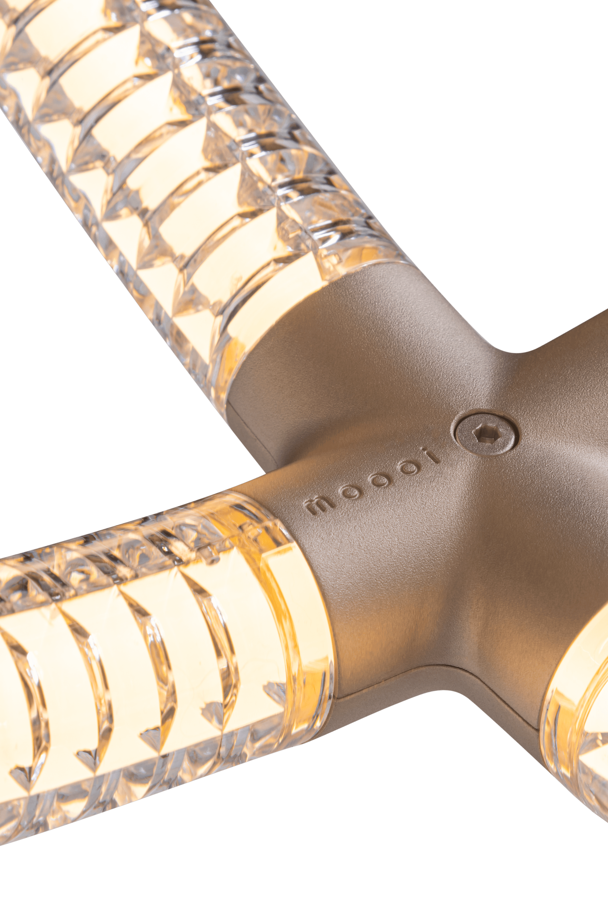 Inspired by the grandeur of Murano glass and mathematical elegance of the golden ratio, Luminora Light merges craftsmanship with modernity. Its floating design embodies simplicity and complexity, creating a luminous sculpture where the structure is light itself. The V-shaped diamond optical pattern and transparent LED tubes produce a mesmerising effect.