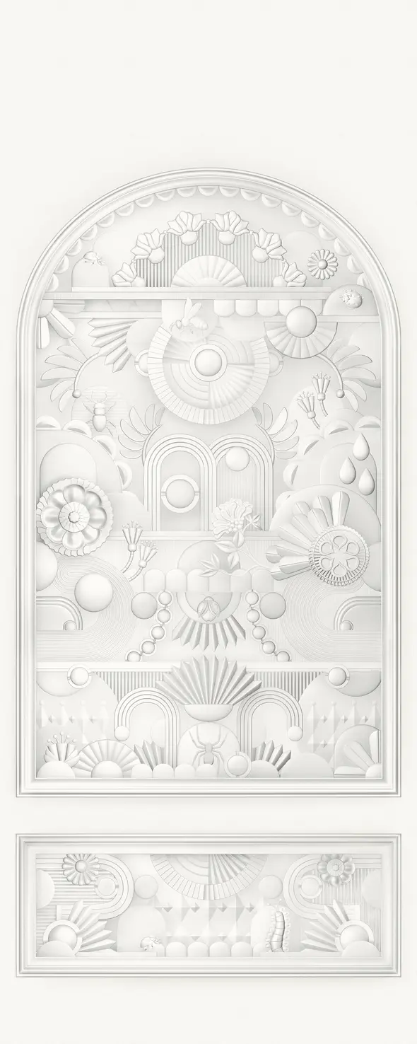 The Golden Tiger Wallcovering is made from laser cut wood veneer with gold foil. Golden Tigers couldn’t bear to be parted from their loved ones, so the wallcovering depicts this friendly Extinct Animal surrounded by his animal friends.