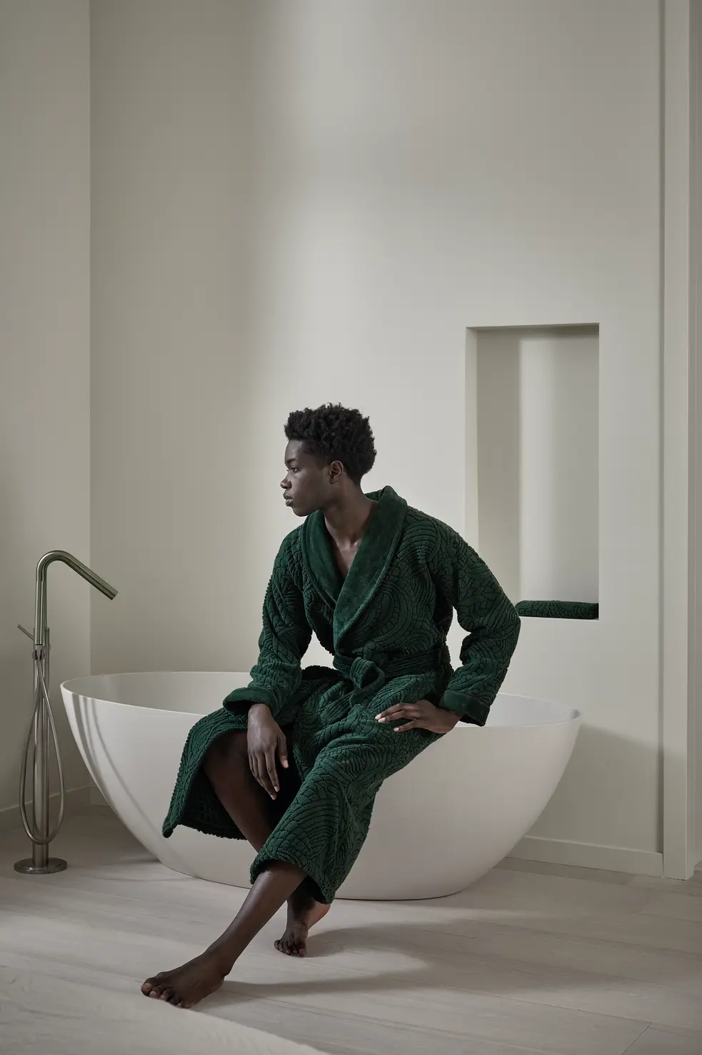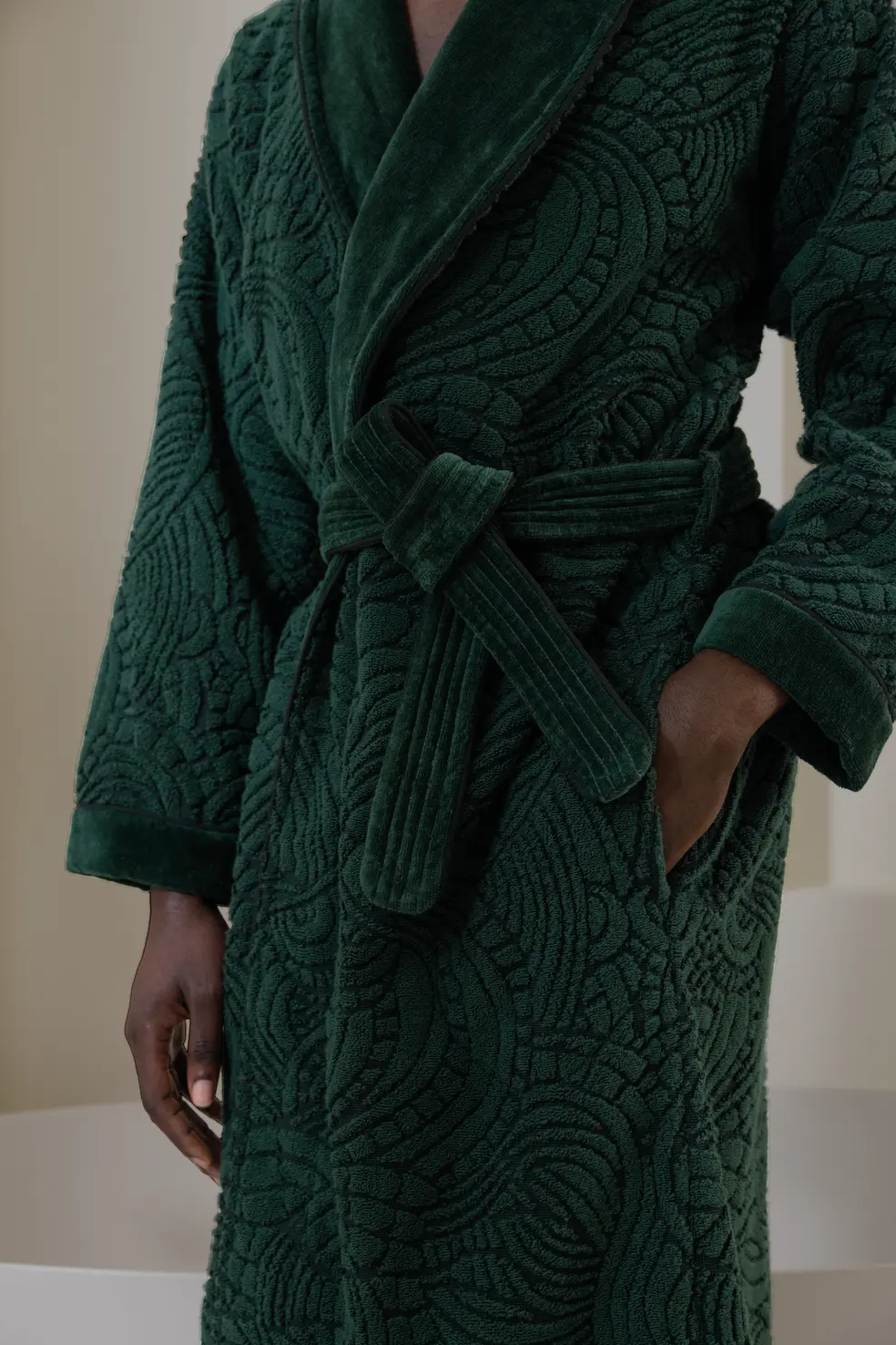 Every day is spa day when you wrap yourself in the jacquard woven softness of the Dodo Pavone bathrobe.