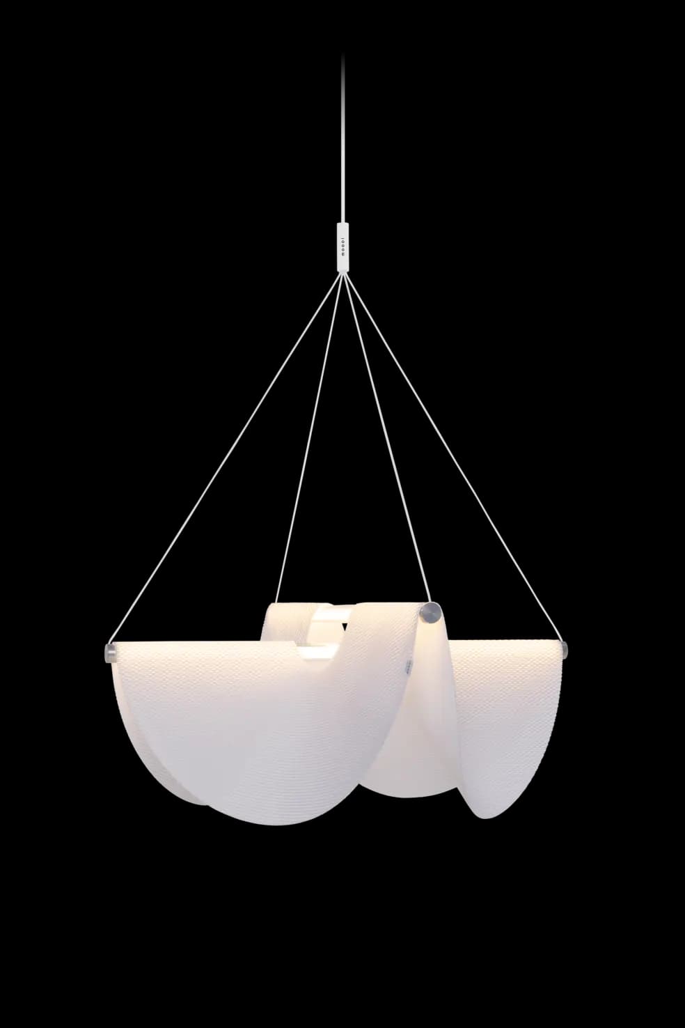 The Drape Light by Jamie Wolfond uses its geometric structure with a 3D-knitted polyester shade to create an essential, deliberate, and warm atmosphere. Shaped by gravity, the shade drapes over two minimalistic glass LED tube lights. This versatile and thoughtful light comes in two sizes and is perfect for every space.