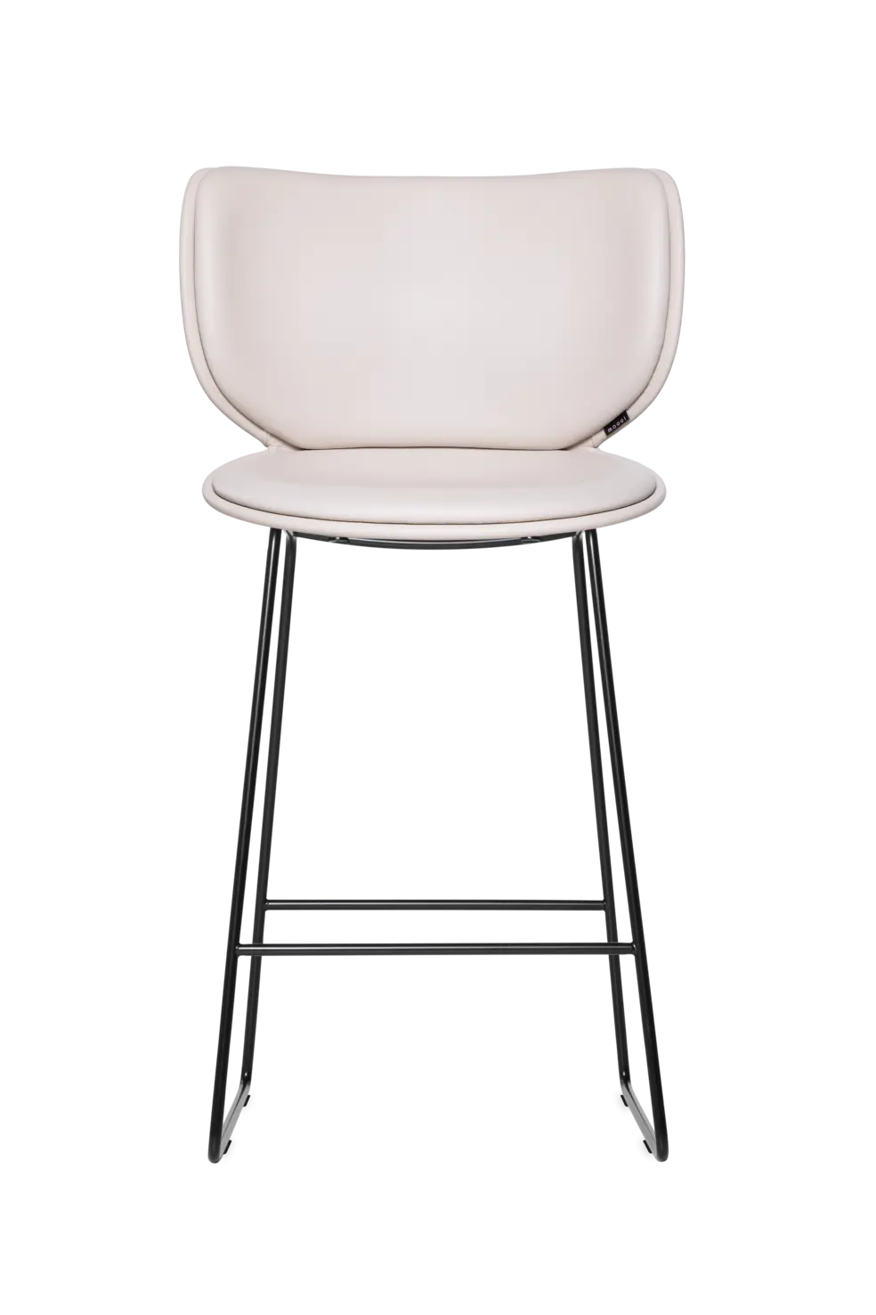 Hana Bar Stool can be upholstered in 437 fabrics and offers a frame in black or chrome for added versatility.