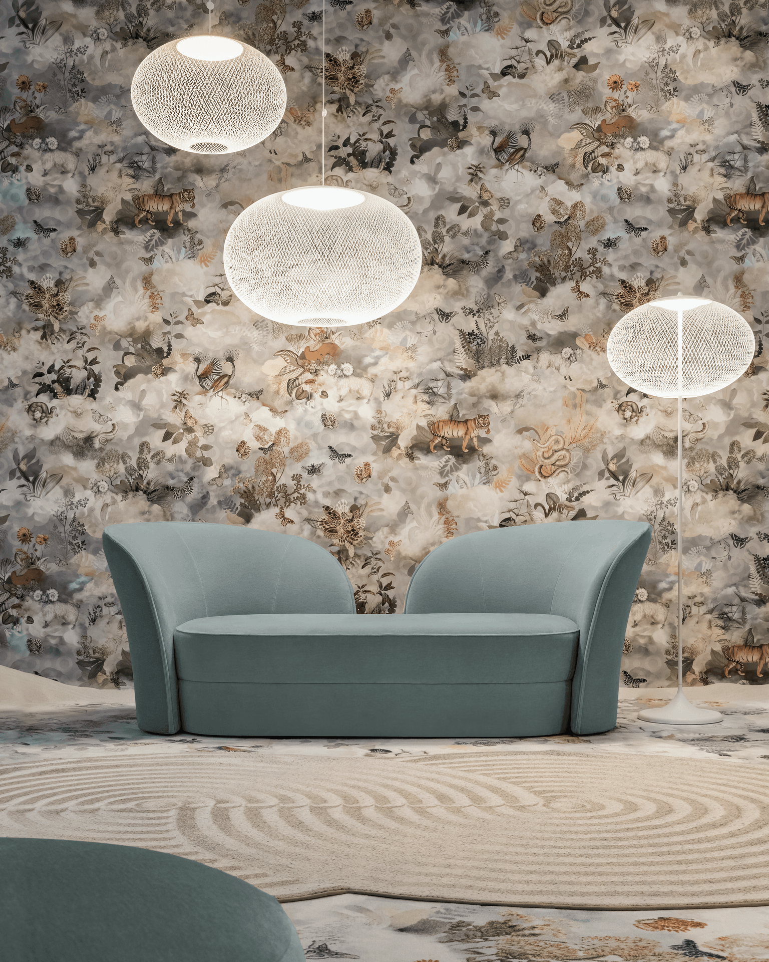 The impressive and sculptural backrests, inspired by calla lilies, of the Aldora Sofa make it an eye-catcher from any angle.