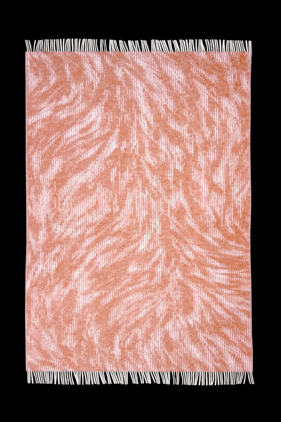 Jacquard-woven blanket with generous dimensions and reversible design, made of heavyweight 100% pure New Zealand wool.