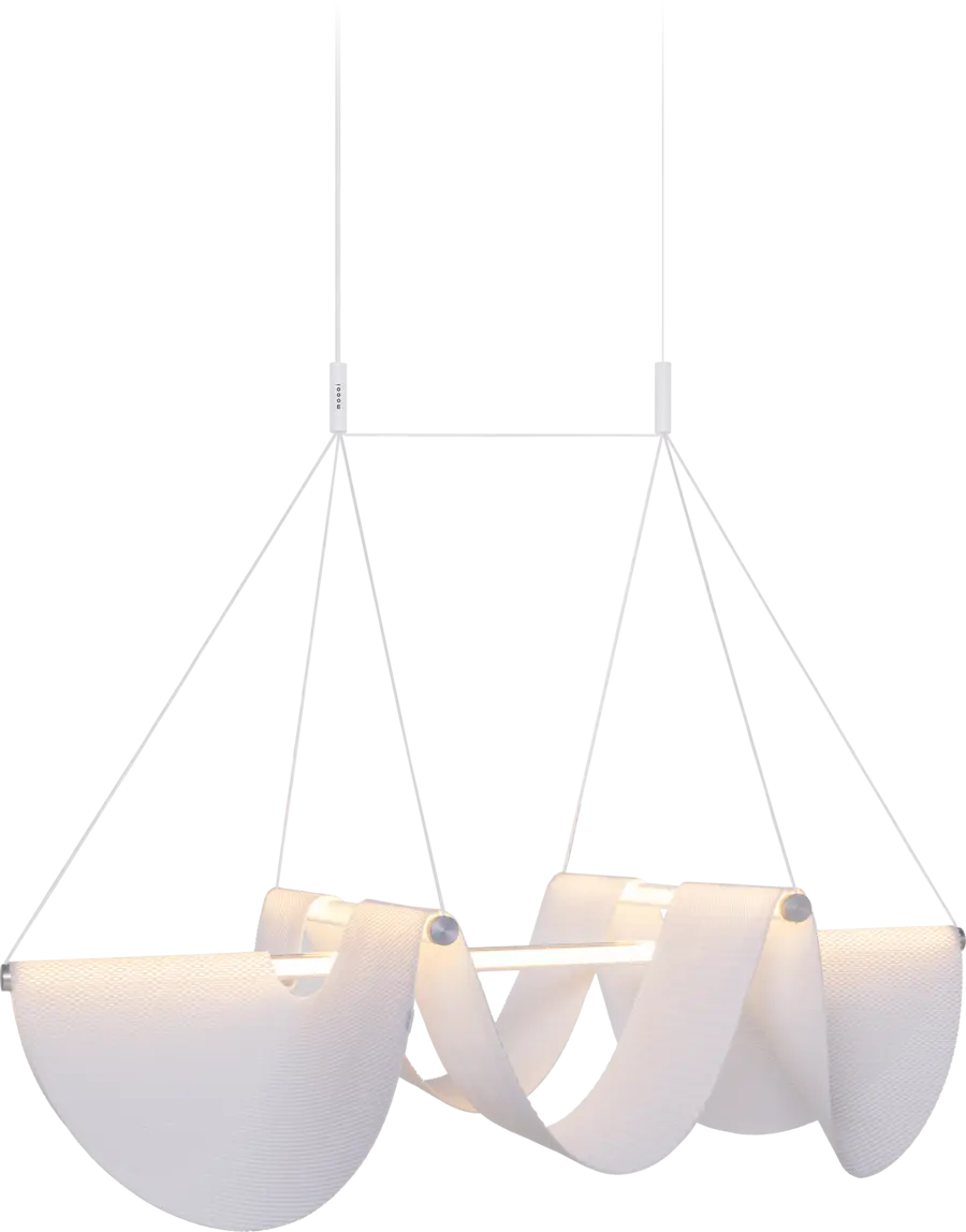The Drape Light by Jamie Wolfond uses its geometric structure with a 3D-knitted polyester shade to create an essential, deliberate, and warm atmosphere. Shaped by gravity, the shade drapes over two minimalistic glass LED tube lights. This versatile and thoughtful light comes in two sizes and is perfect for every space.