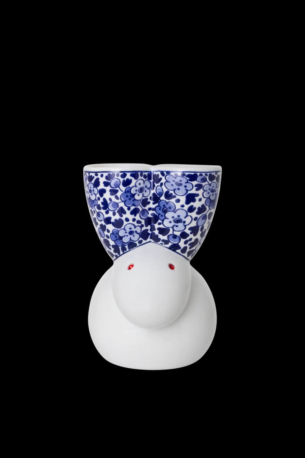 The Egg Vase features an unglazed porcelain exterior with a white glazed interior.