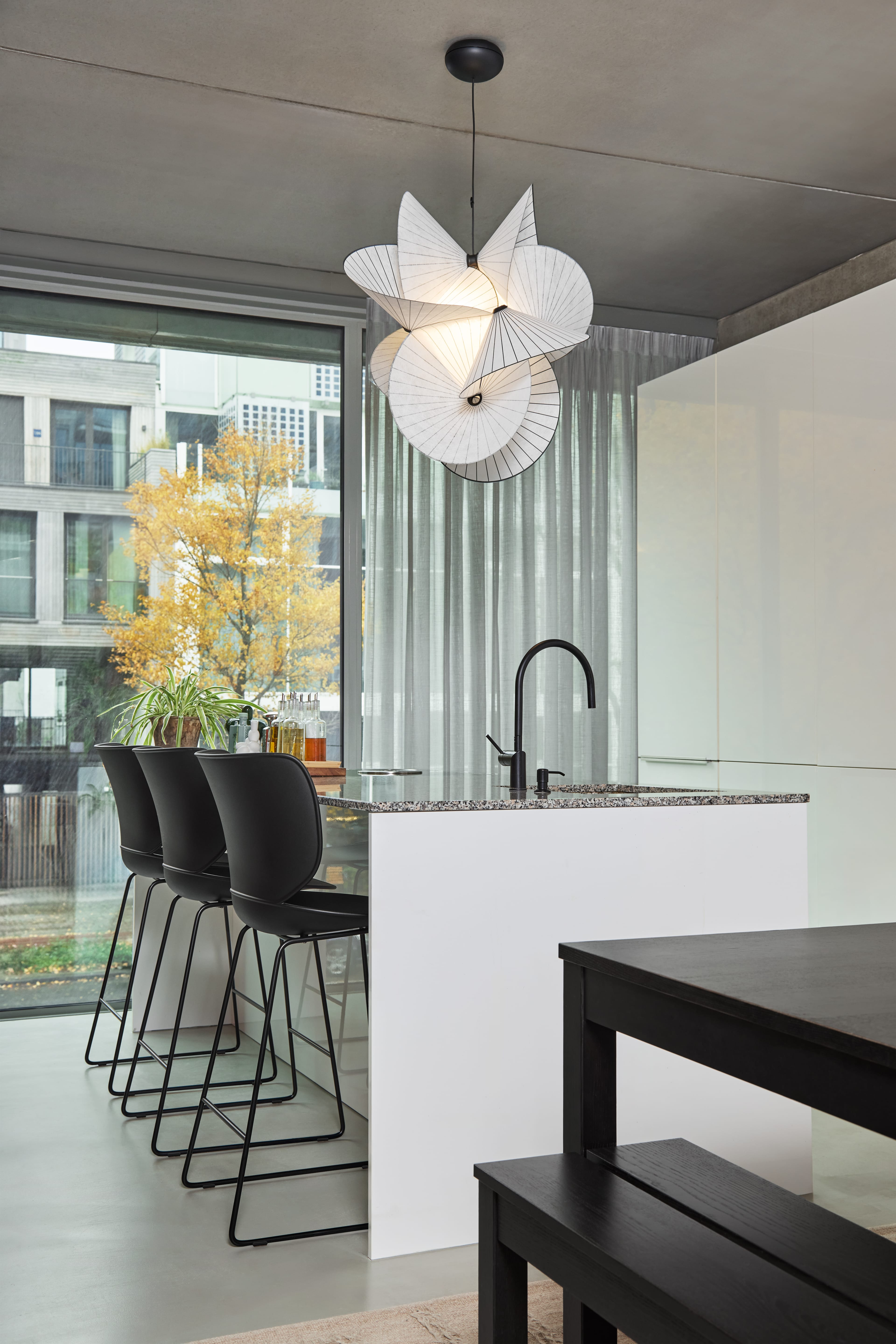Hana Bar Stool brings sculptural elegance to any bar or countertop. Its iconic Hana petal-shaped backrest and curved lines boast a minimalist charm. Available in two heights: 65cm and 75cm. The sleek un-upholstered design pairs beautifully with a sturdy metal base in black or chrome, offering both comfort and style for any elevated space. Sold in a set of 2.