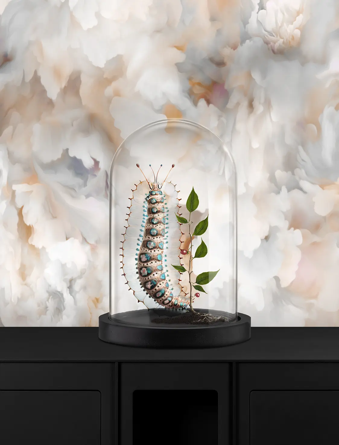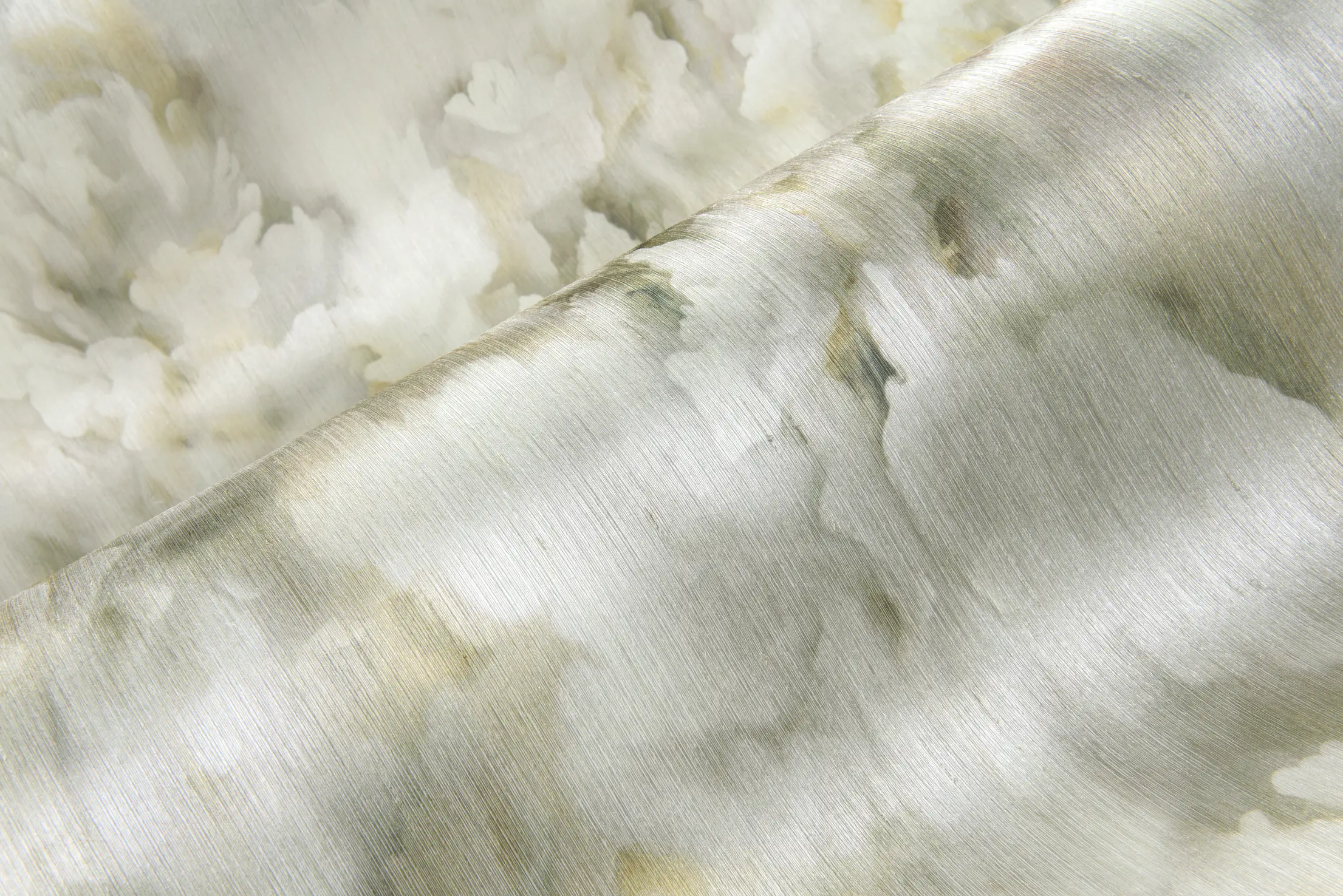 The delicate watercolour-like floral design and fil-à-fil texture create a luxurious, soft pastel backdrop for modern interiors.