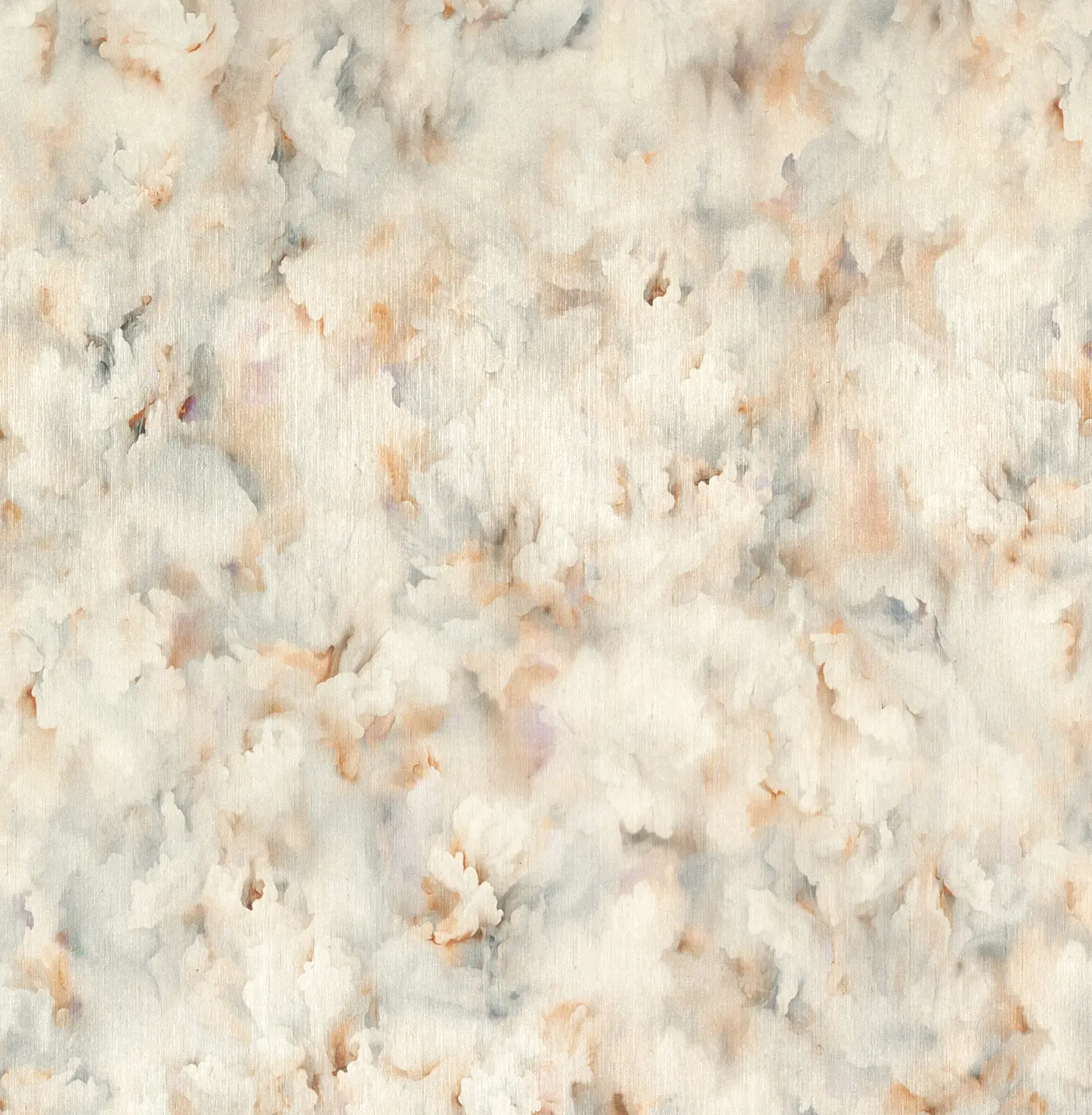 The Silk Bombis Wallcovering is a textile wall covering on non-woven backing. It features abstract floral patterns reminiscent of watercolour-style petals. The design displays the tactile quality of raw silk, presenting a colourful fil-à-fil composition in soft neutral and pastel hues.