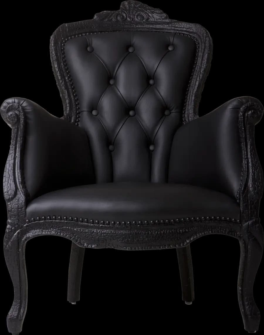 - Material descriptionBurnt wood finished with epoxy resin, fire retardant foam, leather upholstery.