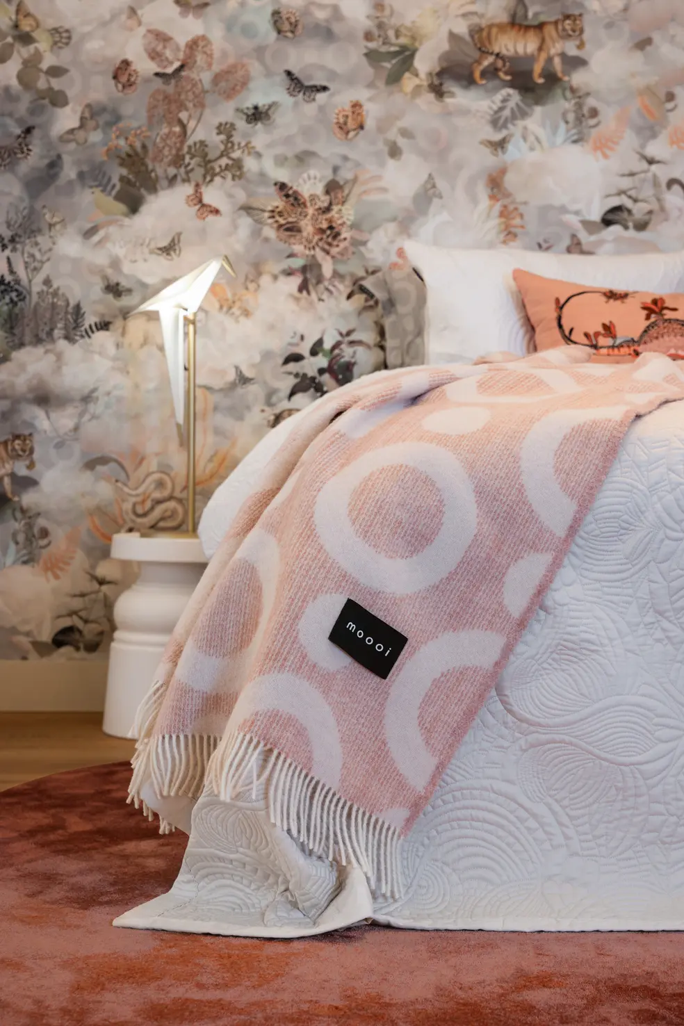 The jacquard-woven blanket, measuring 130 x 200 cm illustrates the enchanting skin of the Umbrella Squid which was covered in bioluminescent ‘jewels’ that changed colour to match its surroundings. Its reversible design is inspired by this phenomenon of nature and allows you to alternate with its striking colours on both sides.