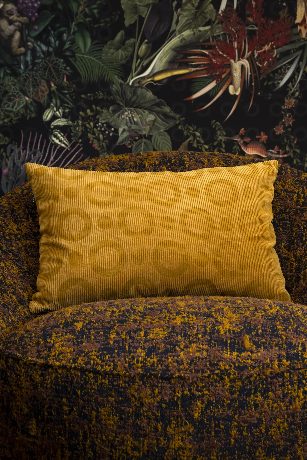 De voorkant van het sierkussen is gemaakt van geribbeld katoenfluweel met reliëf, de achterkant is gemaakt van glad katoenfluweel.