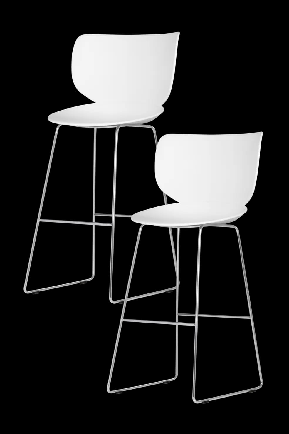 De veelzijdige Hana Bar Stool met zwart of verchroomd frame is verkrijgbaar in 6 kleuren.