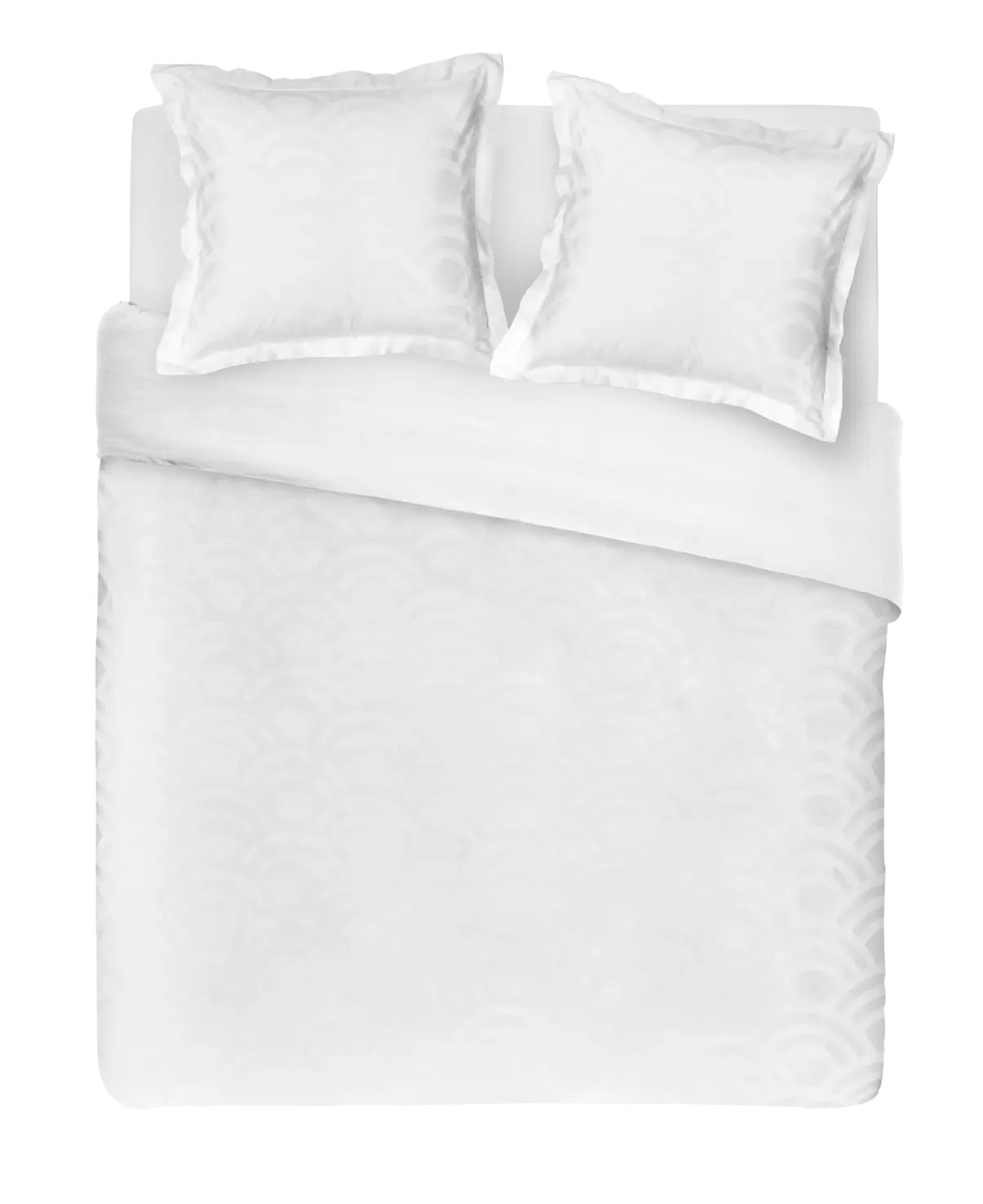 The front is made from white-on-white cotton jacquard for subtle texture. The reverse is smooth 300-thread count cotton sateen, woven from extra-fine yarns for an exceptionally soft touch.