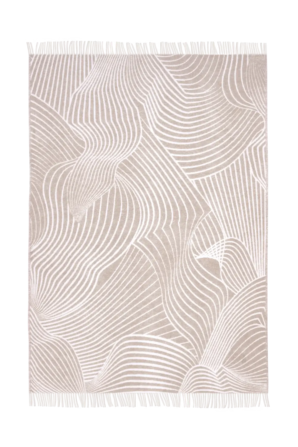 Jacquard geweven deken met royale afmetingen en omkeerbaar dessin, gemaakt van 100% zuiver scheerwol.