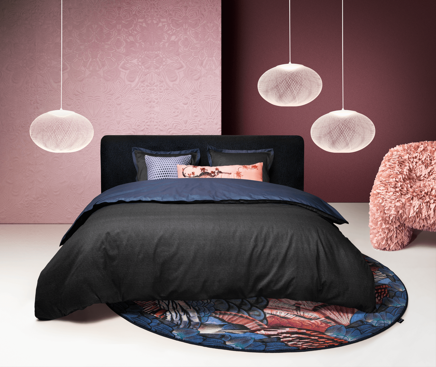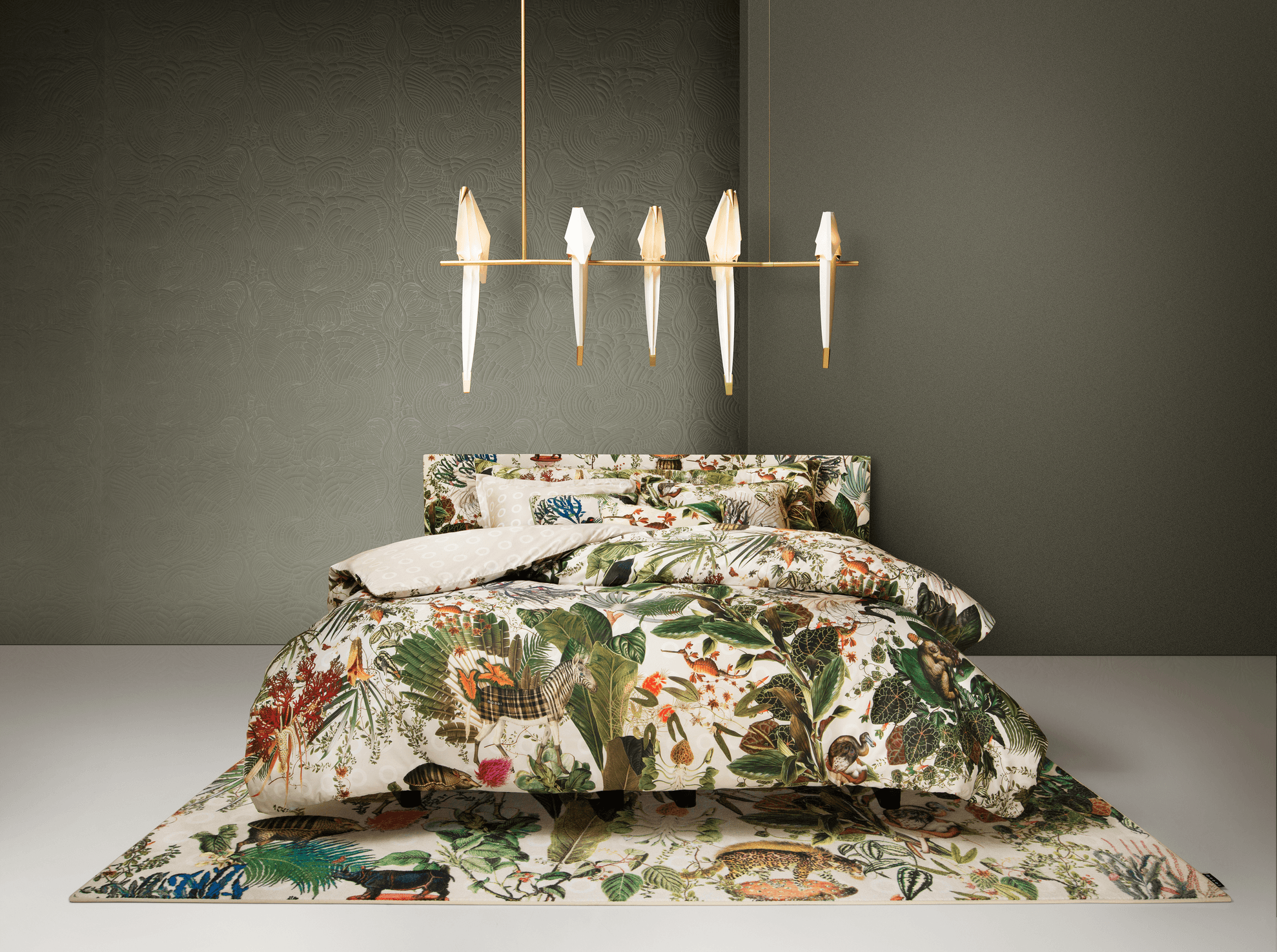 De Extinct Animals-beddengoedcollectie geeft je slaapkamer net dat beetje extra schoonheid en comfort. Denk hierbij aan ingewikkelde ontwerpdetails in intense kleuren en betoverende patronen. De collectie is gemaakt van kwalitatief hoogwaardige stoffen zoals zijde, wol en satinet met veel draden voor een luxueuze uitstraling. Creatieve luxe in optima forma.
