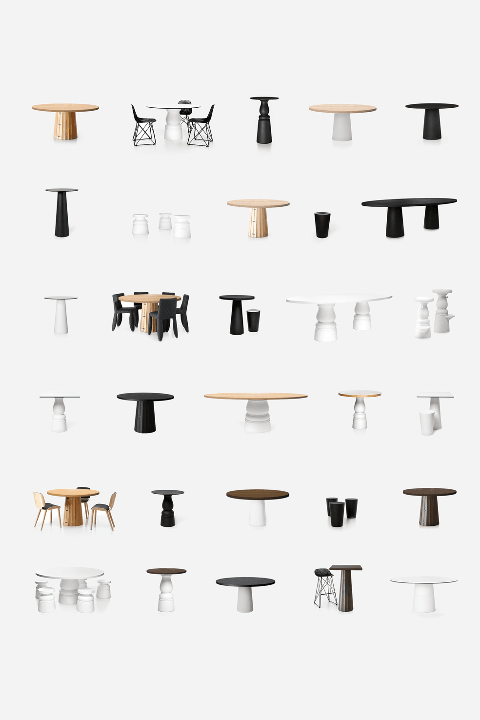 Er is geen enkel ontwerp in de Moooi-collectie dat zo veelzijdig is als de Container-tafel. De onderstellen hebben verschillende hoogtes, afwerkingen, vormen en kleuren. De bladen hebben verschillende vormen, afmetingen, materialen en kleuren. Alle opties zijn onderling uitwisselbaar. Zo zijn er eindeloos veel mogelijkheden die aansluiten bij elke ruimte, elk interieur en elke persoonlijke stijl. De Container is de bescheiden bediende in elk goed ontworpen interieur.
