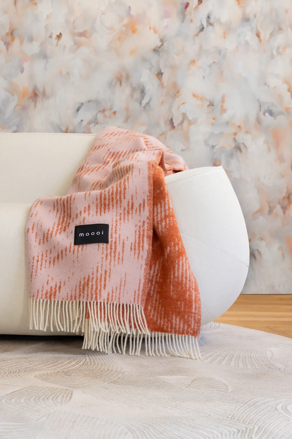 Jacquard-woven blanket with generous dimensions and reversible design, made of heavyweight 100% pure New Zealand wool.