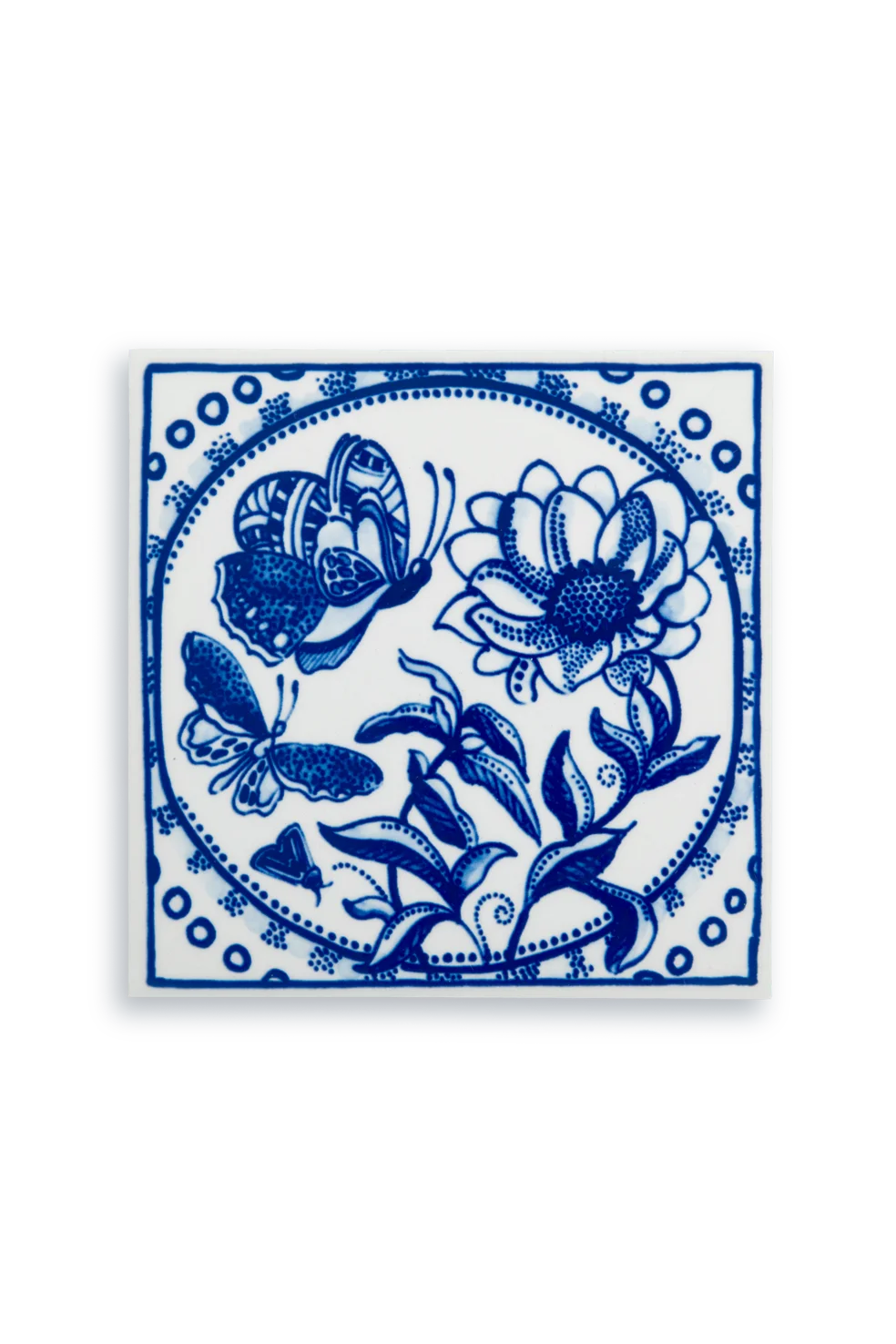 Each design is meticulously hand-painted and transferred to tiles by Royal Delft, makers of original Delft Blue since 1653.