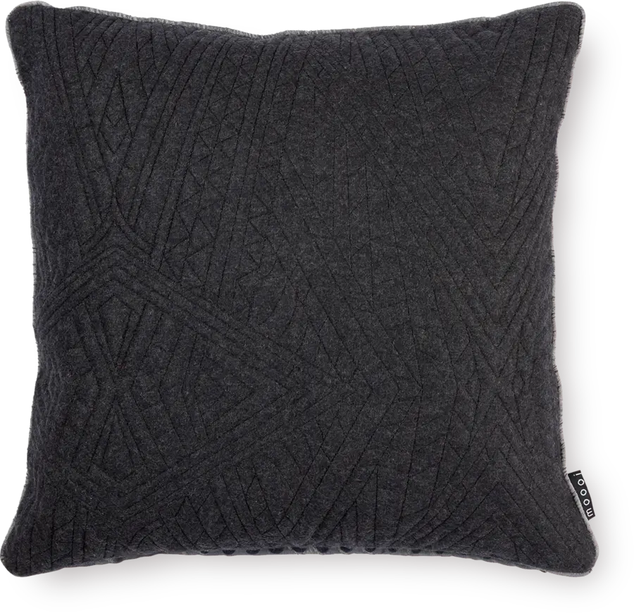 This decorative pillow is made of raw silk and a wool blend. The quilted and embroidered design and flock print add a sophisticated touch.