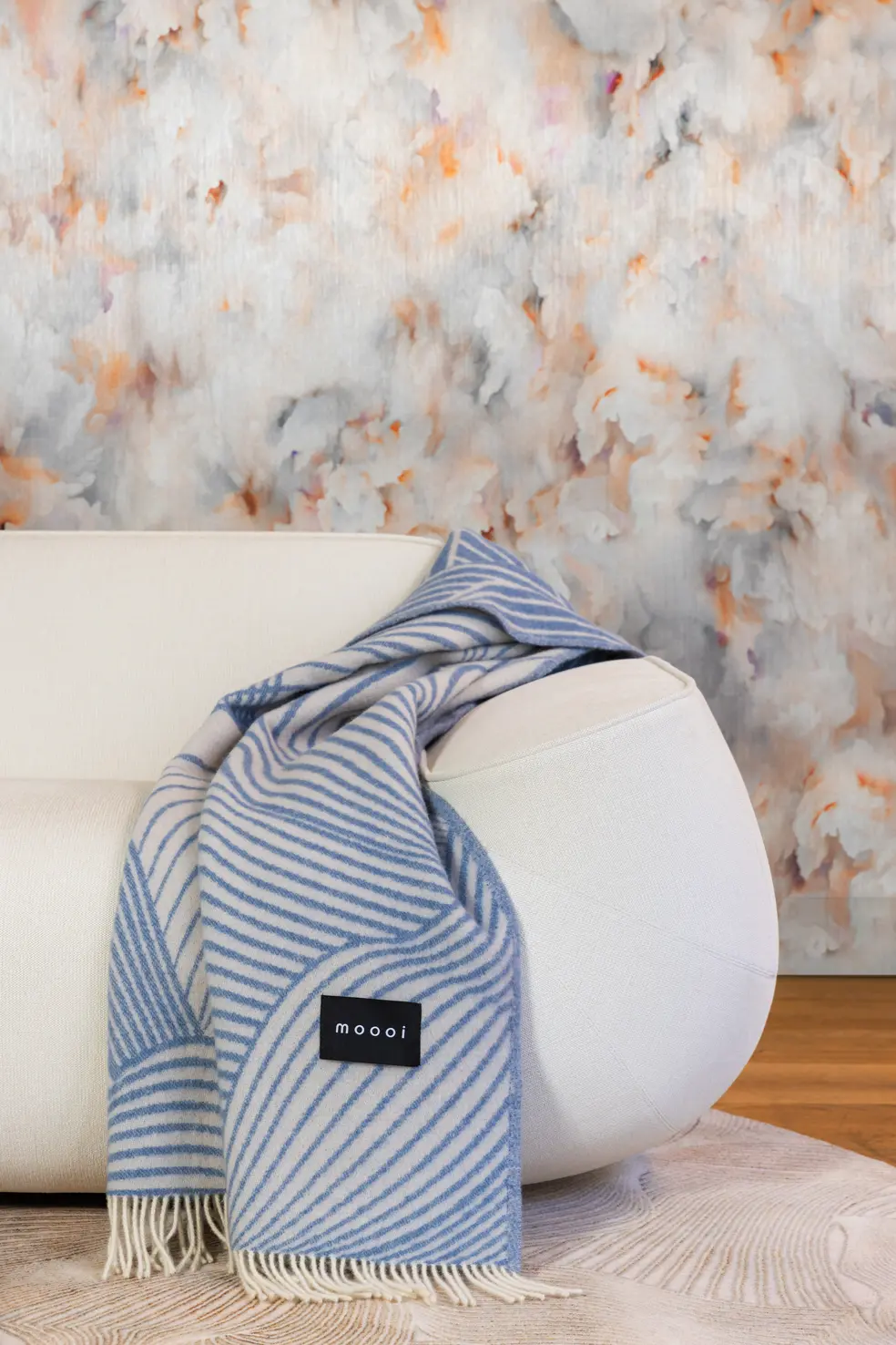 The jacquard-woven wool blanket captures the soothing lo-fi hum and vibrant wing design of the Techno Bee. This remarkable insect generates rhythmic designs with its wings, reminiscent of cymatics, which mesmerize observers into a trance-like state. The Techno Bee blanket is reversible and has mesmerizing prints on both sides with generous dimensions of 130 x 200 cm.