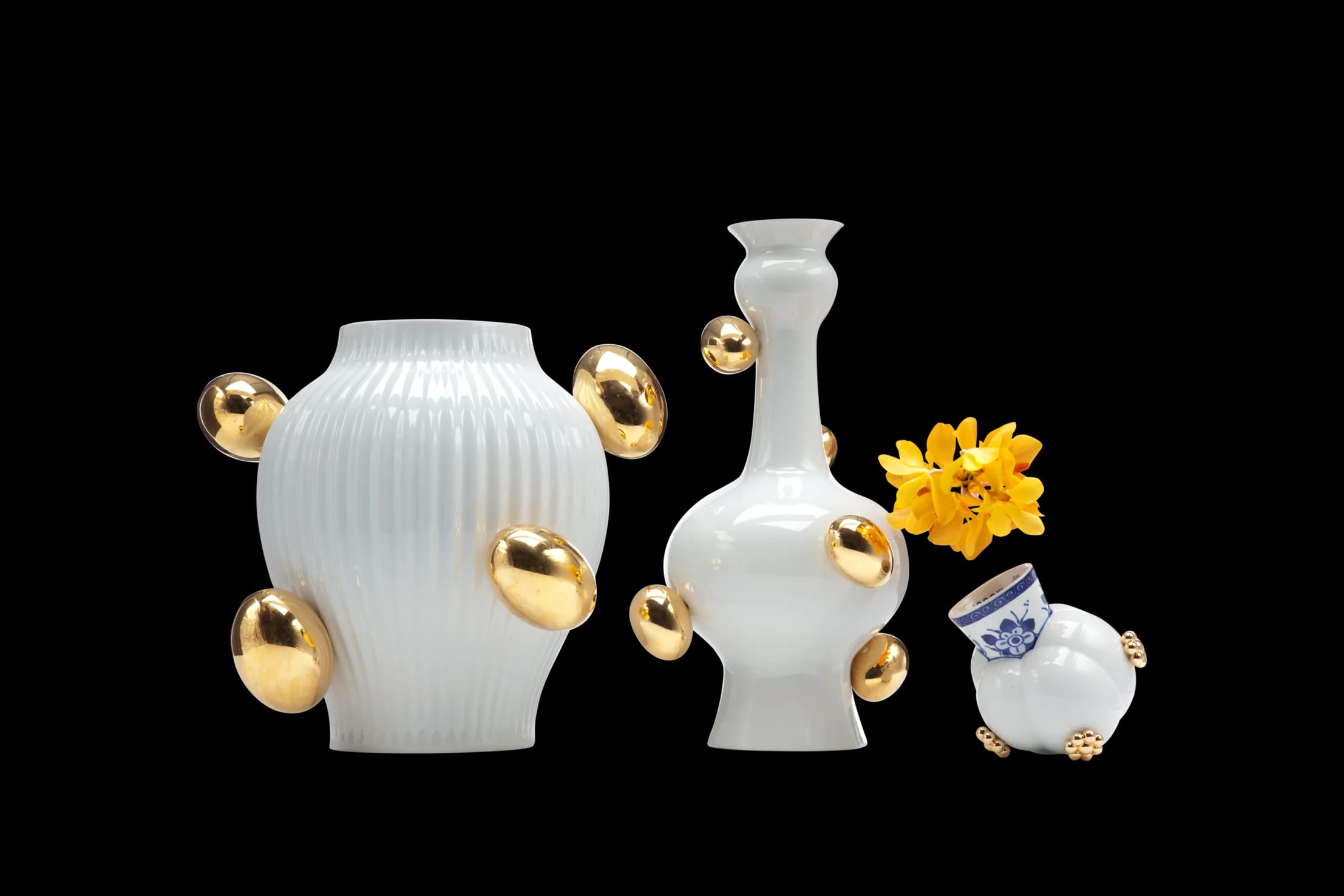 Dive into grand celebrations with Bubble Bash. Crisp whites, gleaming golds and soft curves come together in a festive display of modern luxury.
