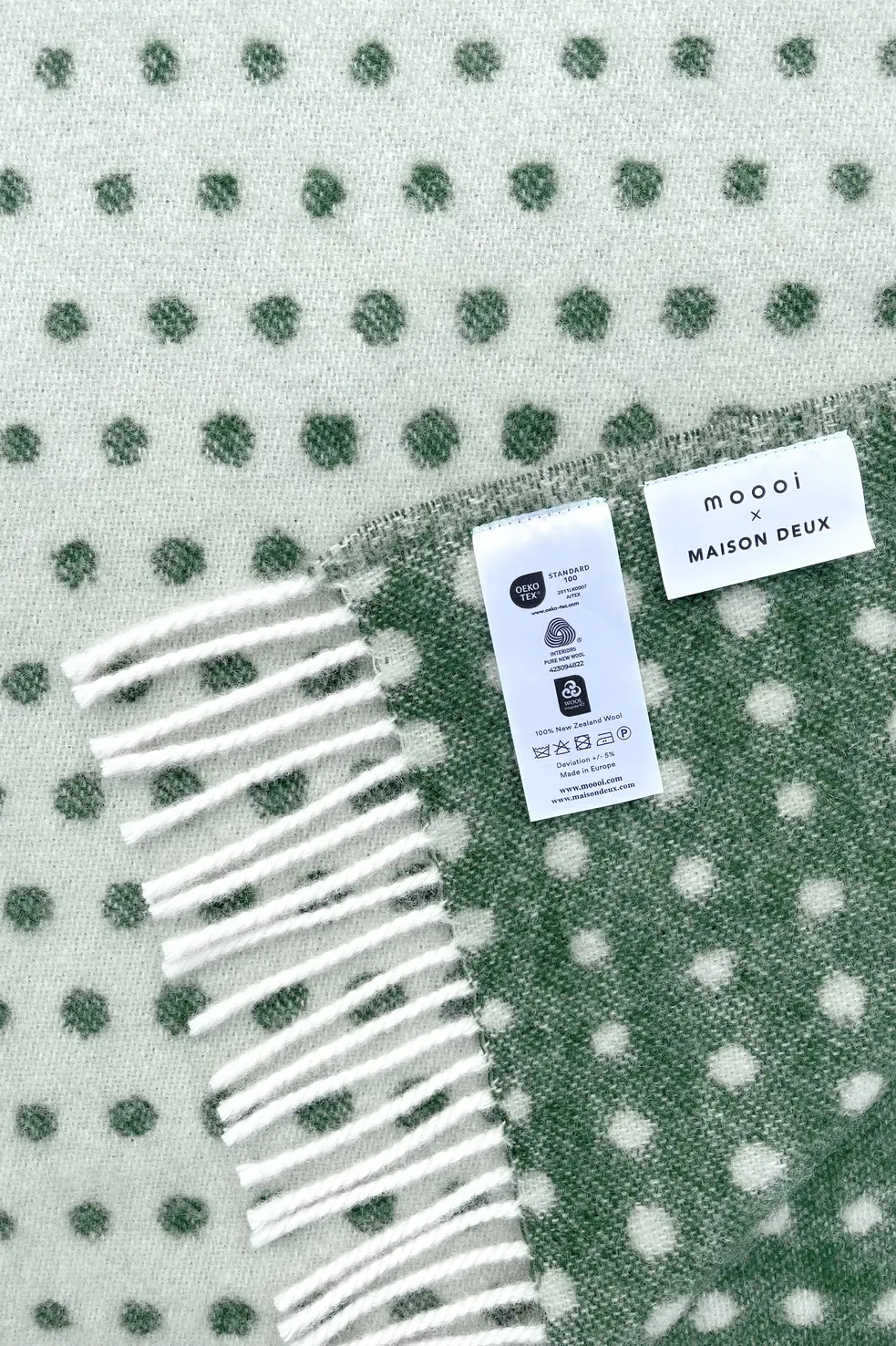 Jacquard-woven blanket with generous dimensions and reversible design, made of heavyweight 100% pure New Zealand wool.