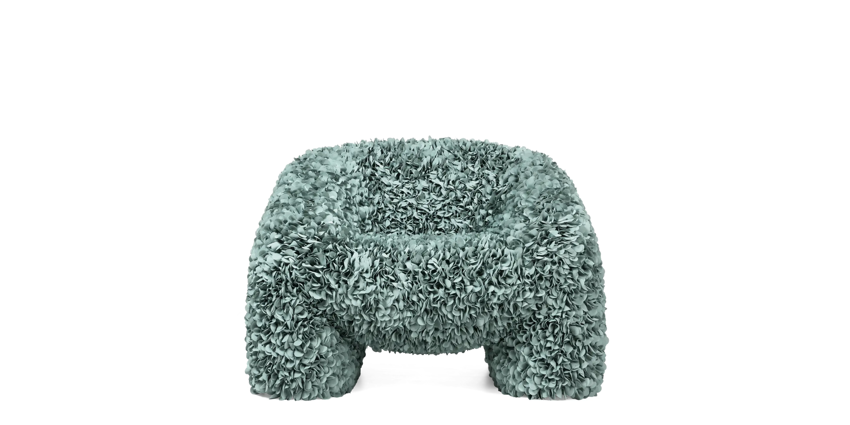 The armchair’s curves and signature fabric are inspired by Hortensia flowers: a voluminous plant with blooming petals.