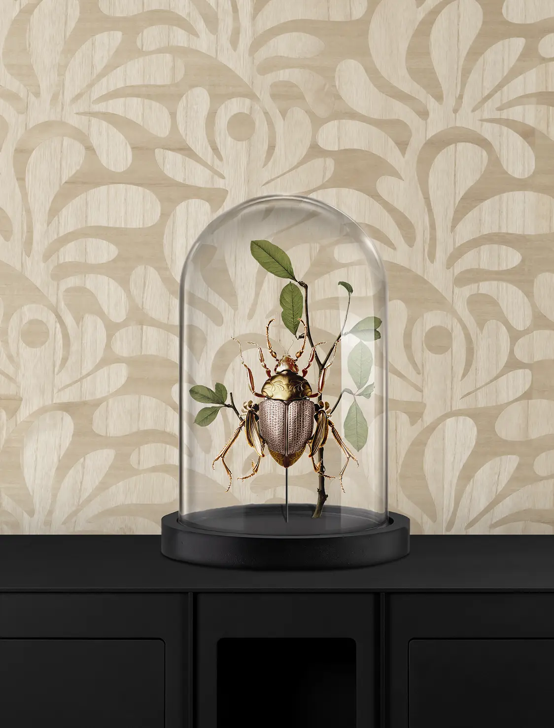 Light wood veneer inlay and fern motifs bring organic design and airy elegance to any room with a refined artistic touch.