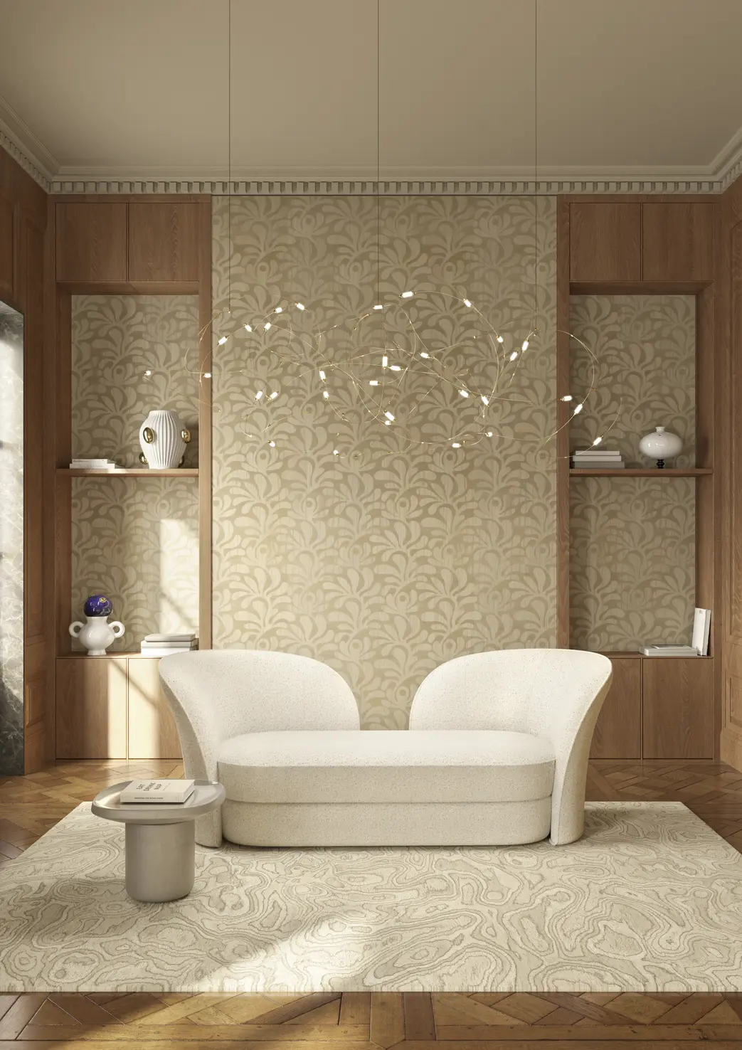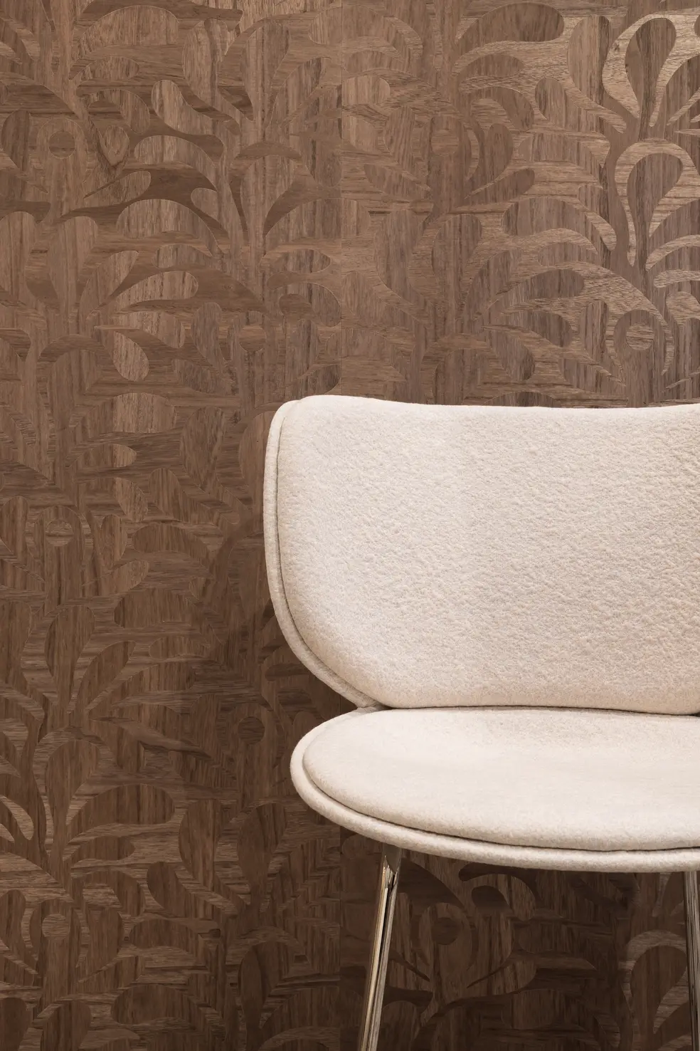 This marquetry-inspired, light wood wallcovering offers timeless, sophisticated style with its soothing mono-coloured palette.